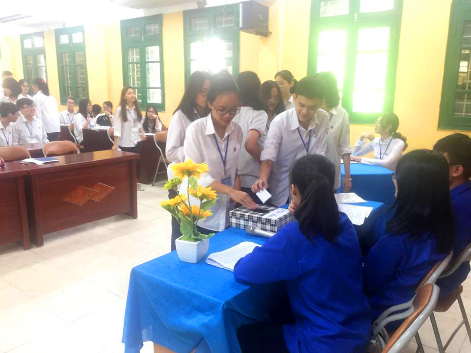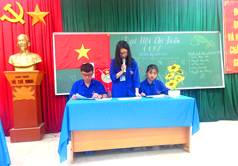 Trong không khí náo nức chào đón năm học mới và thực hiện kế hoạch số 09 của Đoàn TNCS Hồ Chí Minh trường THPT Trần Hưng Đạo – Thanh Xuân, vào lúc 9h00 thứ 4 ngày 12 tháng 9 năm 2018, chi đoàn 11D7 đã tổ chức Đại hội Chi đoàn mẫu tại phòng họp của Trường. Đại hội đã vinh dự được đón tiếp thầy giáo Vũ Đình Hà – Phó Hiệu trưởng nhà trường, thầy giáo Vương Văn Thủy – Bí thư Đoàn trường, thầy giáo Vũ Văn Tân – Phó bí thư Đoàn trường, cô giáo Trần Thu Hương – Giáo viên chủ nhiệm lớp 11D7, cùng các đồng chí là Bí thư, Lớp trưởng của 35 chi đoàn trong toàn Trường.