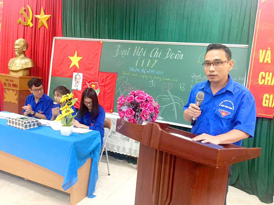Thầy giáo Vương Văn Thủy – Bí thư Đoàn trường, đã lên chúc mừng Đại hội và phát biểu ý kiến chỉ đạo. Thay mặt BCH Đoàn trường, thầy giáo ghi nhận và đánh giá cao sự chỉ đạo của BCH Chi đoàn 11D7 và sự nỗ lực của các đoàn viên trong Chi đoàn luôn đoàn kết và phát huy tinh thần xung kích của tuổi trẻ hoàn thành tốt các nhiệm vụ mà Đoàn trường giao phó. Bên cạnh đó, Thầy cũng nhấn mạnh những mặt còn tồn tại cần khắc phục trong nhiệm kỳ tới. Đặc biệt, BCH khóa mới cần phát huy vai trò đầu tàu gương mẫu để đoàn viên noi theo, phát huy tinh thần xung kích sáng tạo, làm tốt công tác tuyên truyền, tập hợp đoàn kết đoàn viên, thanh niên.